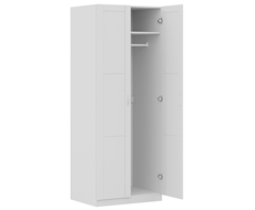 Двухдверный шкаф для одежды, оснащенный штангой и полкой.