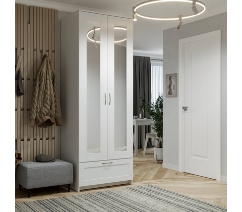 Шкаф 2-х дверный Сириус с ящиком и двумя зеркалами (белый)