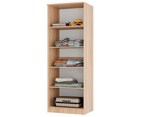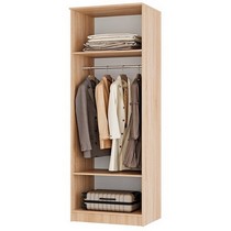 Двухдверный шкаф оснащен 4 полками и штангой для вешалок.
