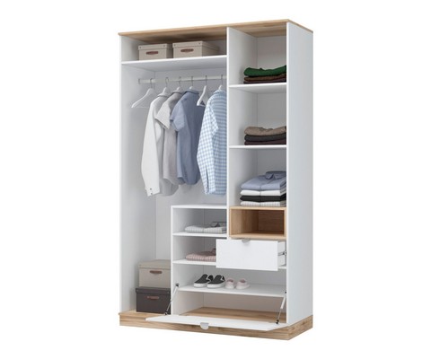 Задняя стенка: ЛХДФ 4 мм Белый / ЛДСП 16 мм Дуб Делано.