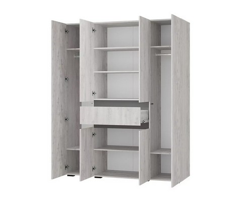 Шкаф 4-х створчатый Мрия ШК-13, Бетон пайн светлый, Графит комплектуется штангами для вешалок.