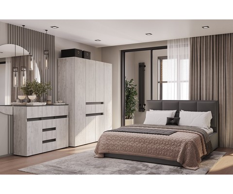 Шкаф 4-х створчатый Мрия ШК-13, Бетон пайн светлый, Графит