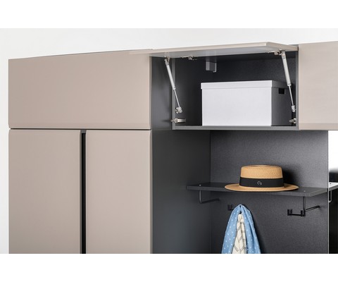 Антресоль Сидней 16.314.01 с откидной дверцей, которая открывается с помощью механизма-толкателя push-to-open.