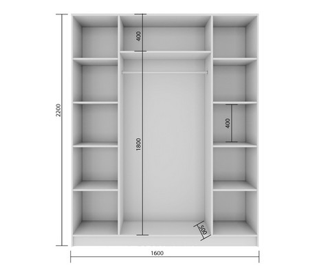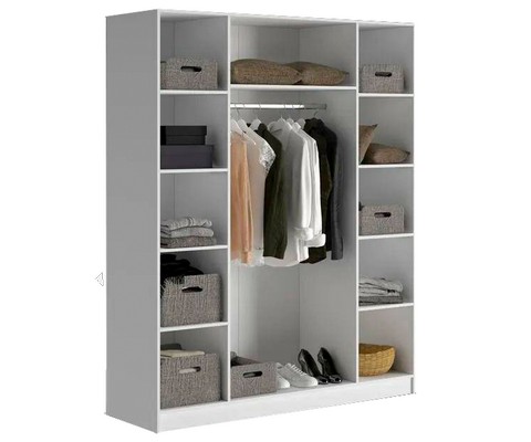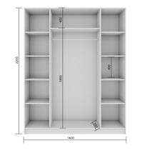 Внутреннее наполнение шкафа состоит из большого количества полок для хранения.