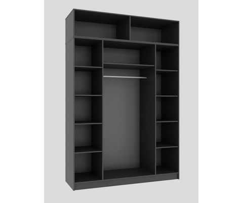 Внутреннее наполнение шкафа состоит из большого количества полок для хранения.