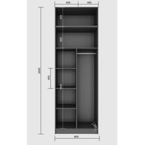 Внутреннее наполнение шкафа состоит из большого количества полок для хранения.