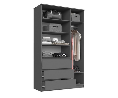 Шкаф Челси 1200 в современной отделке поможет рационально использовать пространство в комнате. Внутреннее наполнение со штангой и многочисленными полками.