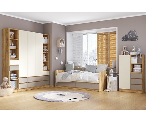Шкаф Челси Color (слоновая кость, глиняный серый, дуб крафт).