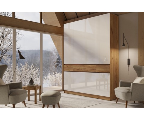 Шкаф четырехстворчатый Роджина (дуб крафт, белый глянец)