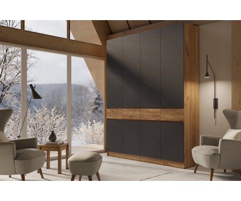 Шкаф четырехстворчатый Роджина (дуб крафт, графит)