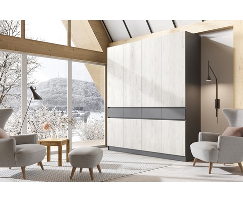 Шкаф четырехстворчатый Роджина (графит, дуб крафт белый)