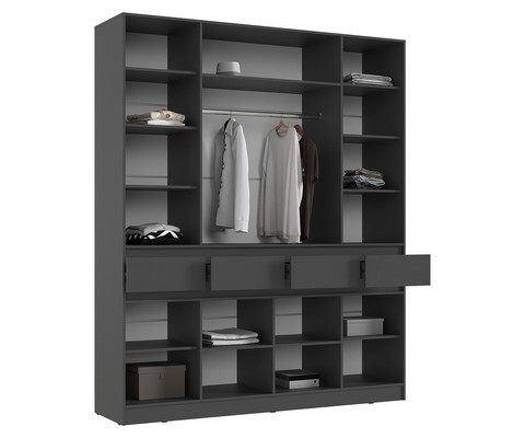 Шкаф четырехстворчатый Роджина (графит, дуб крафт белый) стильный и функциональный. Элегантный дизайн и современная отделка.