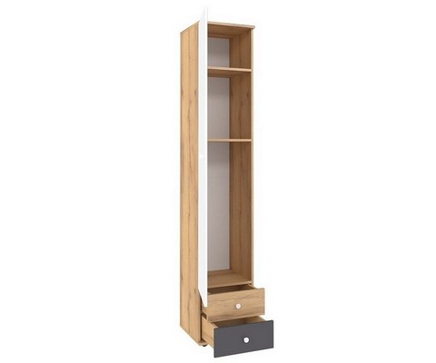 В комплекте три регулируемые по высоте полки и два выдвижных ящика на шариковых направляющих полного выдвижения.