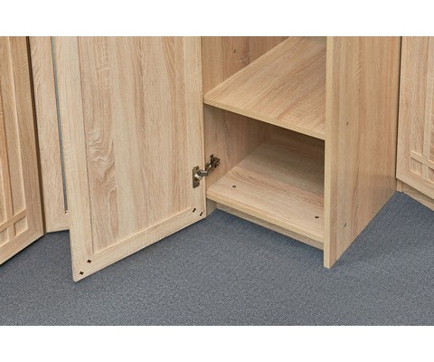 Декоративная раскладка на фасаде позволяет собрать шкаф с открыванием только на левую сторону (петли слева).