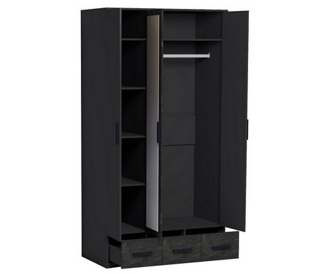 Зеркало на центральном фасаде визуально облегчает конструкцию шкафа и добавляет ему функциональности.