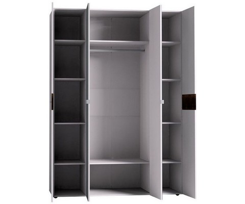 Шкаф с распашными дверцами оснащен стационарной штангой и полками.
