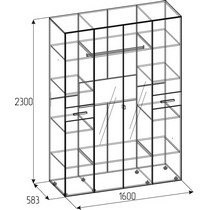 Материалы: ЛДСП 16 мм, кромка ПВХ 0,45/2 мм, задняя стенка ХДФО, зеркало 4 мм.