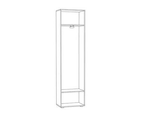 Шкаф для одежды Лайн 08.122 с зеркалом состоит из антресольной полки, центральной секции с выдвижной штангой и нижней полки для обуви.