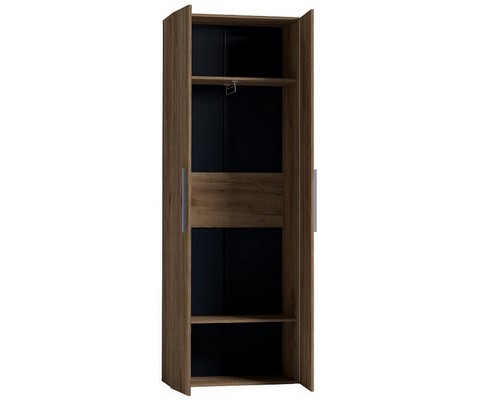 Оснащен выдвижной штангой для вешалок и двумя полками.