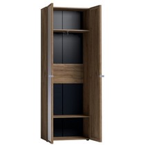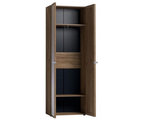 Оснащен выдвижной штангой для вешалок и двумя полками.