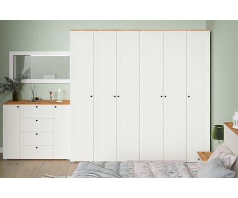 Шкаф для одежды Остин 13.336.02 с ящиками(белый шагрень, дуб золотой)