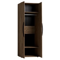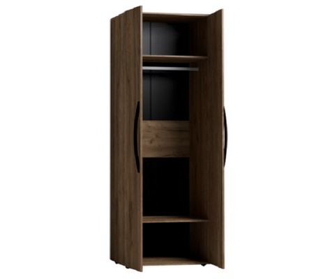 Распашной шкаф комплектуется стационарной штангой и двумя полками - сверху и снизу.