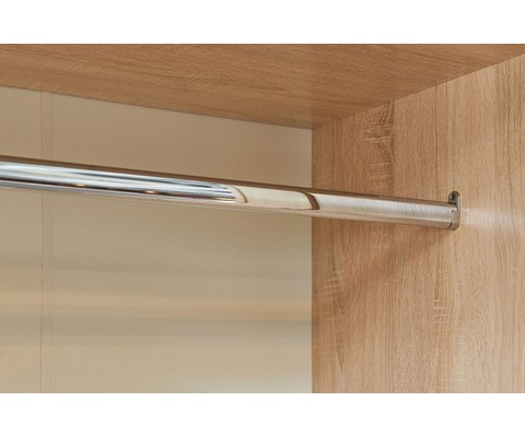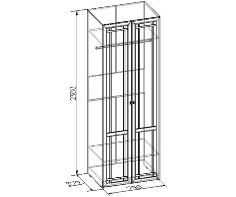 Шкаф оснащен штангой для вешалок и двумя полками.