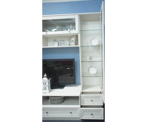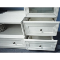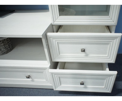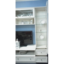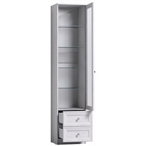 Шкаф состоит из отделения для посуды со стеклянной вставкой на двери и 2 выдвижных ящиков.