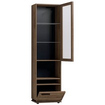 Шкаф оснащен открытыми полками и двумя закрытыми секциями.