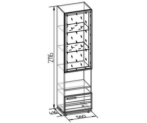 За тонированным стеклянным фасадом - 2 регулируемые по высоте бесцветные стеклянные полки.