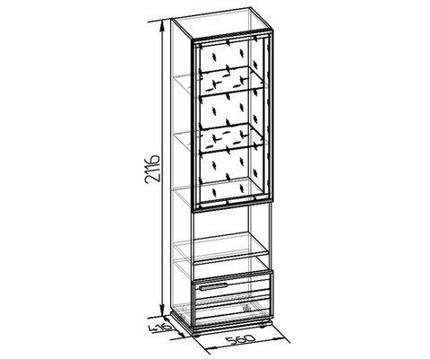 За тонированным стеклянным фасадом - 2 регулируемые по высоте бесцветные стеклянные полки.