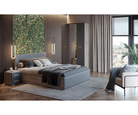 Шкаф двухдверный с зеркалом Наоми ШК-22 (дуб каньон/графит нубук)
