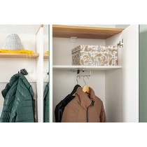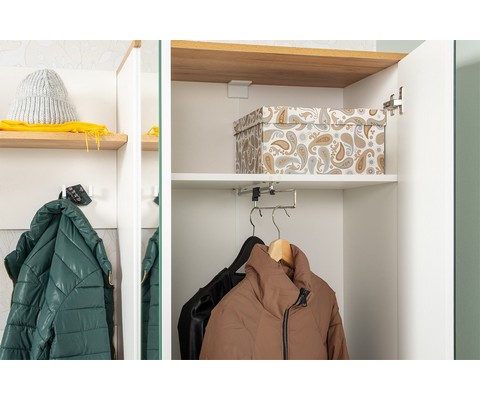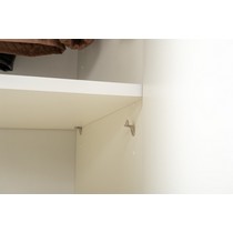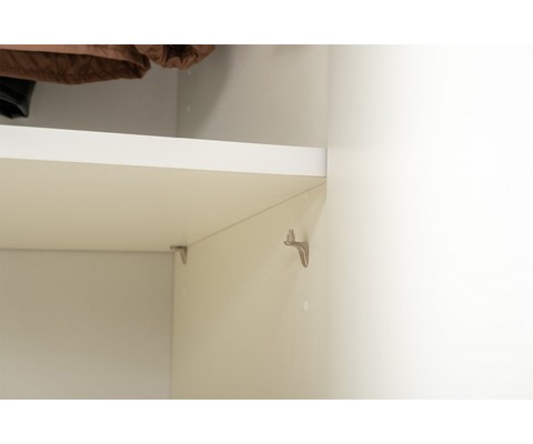 Двустворчатый распашной шкаф для одежды Октава 13.338 оборудован тремя полками и выдвижной штангой.