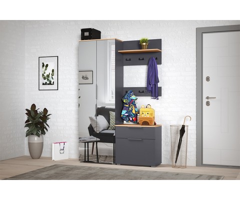 Шкаф двухстворчатый для одежды Октава 13.338 с зеркалом (серый графит, дуб золотой)
