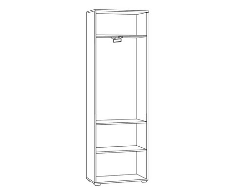 Двустворчатый распашной шкаф для одежды Октава 13.338 оборудован тремя полками и выдвижной штангой.