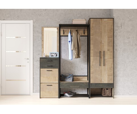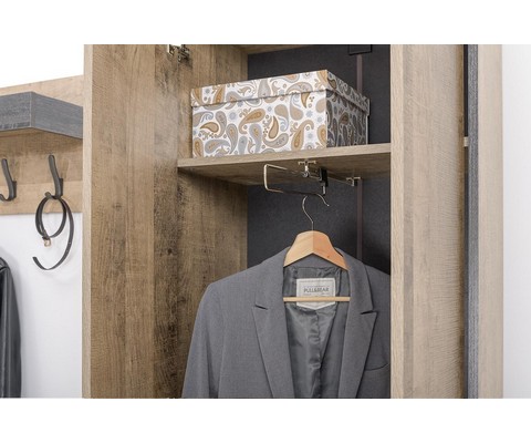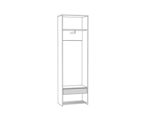Шкаф двухстворчатый для одежды Трувор 13.328.02 со съемной металлической подставкой для обуви, выдвижным ящиком и выдвижной штангой.