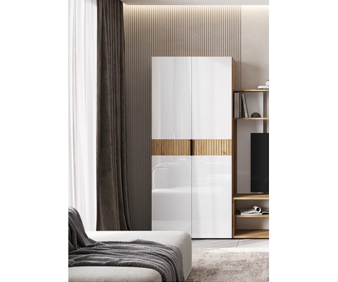 Шкаф двухстворчатый Роджина 800 (белый глянец, дуб крафт) стильный и функциональный. Элегантный дизайн и современная отделка.