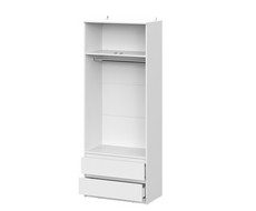 Шкаф двухстворчатый с ящиками Денвер белый с полками и штангой для одежды.