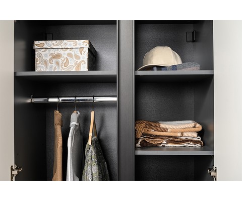 Шкаф двухстворчатый Сидней 16.367.02 состоит из полок для белья и отсека со штангой для одежды.