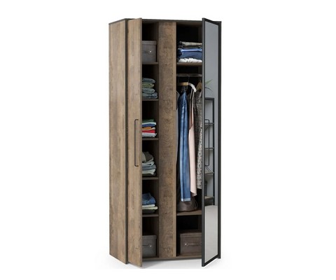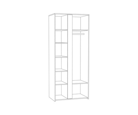 Двухстворчатый шкаф Трувор 13.204.01 оборудован полками, продольной штангой для вешалок и зеркалом на фасаде в полный рост.