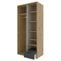 Компоненты, входящие в комплект: 1 штанга для вешалок, 1 ящик, 2 дверцы, 6 полок.