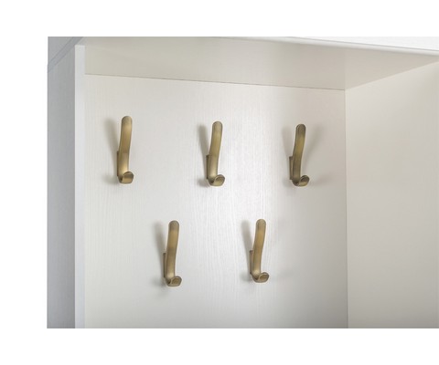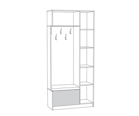 Комбинированный шкаф Ливерпуль 13.21 состоит из открытой вешалки с пятью крючками и одностворчатого шкафа с полками.