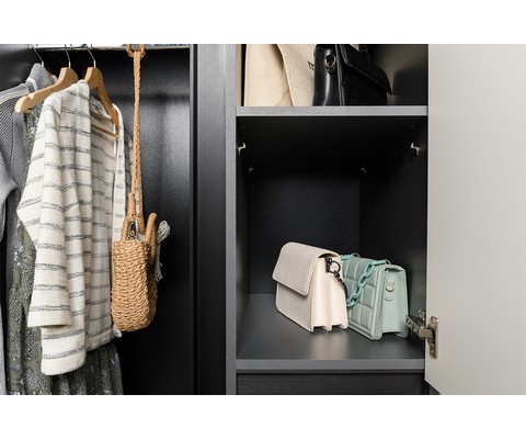 Шкаф комбинированный Сидней 13.18 оборудован просторными полками, ящиком и штангой для вешалок.