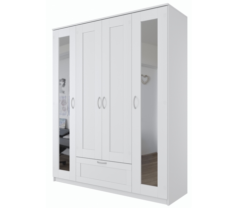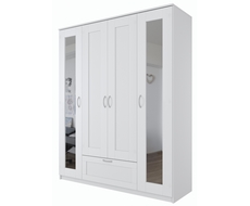 Шкаф комбинированный Сириус 4 двери и 1 ящик (белый) с 2 зеркалами