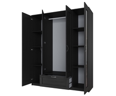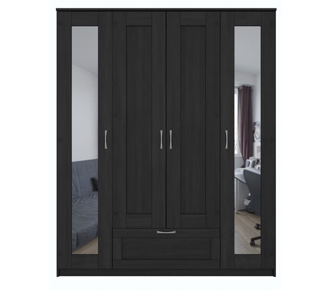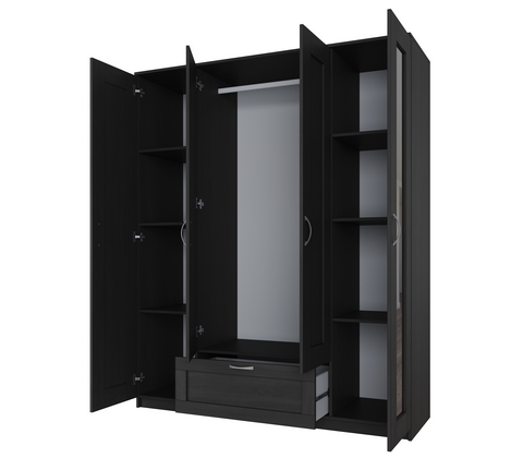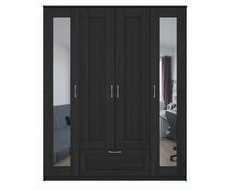 Шкаф для одежды четырехстворчатый, с одним выдвижным ящиком и двумя зеркалами.