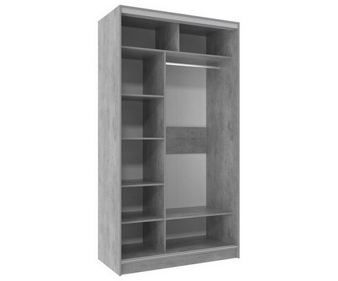 Внутреннее наполнение шкафа состоит из стеллажа для белья, четырех больших ниш внизу и вверху, а также стационарной штанги.