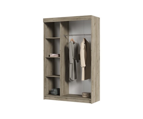 Шкаф оборудован двумя секциями - платяным шкафом и секцией с тремя полками. .