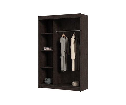 Шкаф оборудован двумя секциями - платяным шкафом и секцией с тремя полками. .
