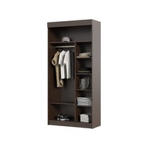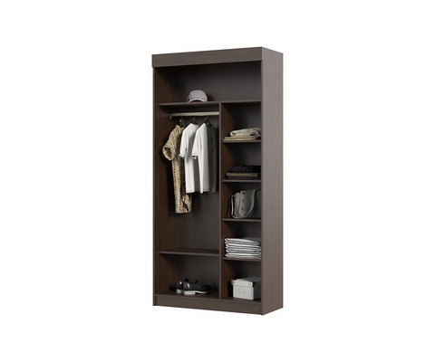 В шкафу имеются штанга верхней одежды и полки для вещей. .