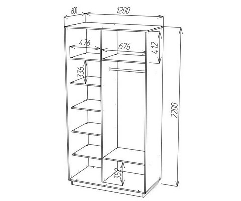 Шкаф-купе Ника-2 с алюминиевым профилем и зеркалами на 2-х дверях cонома